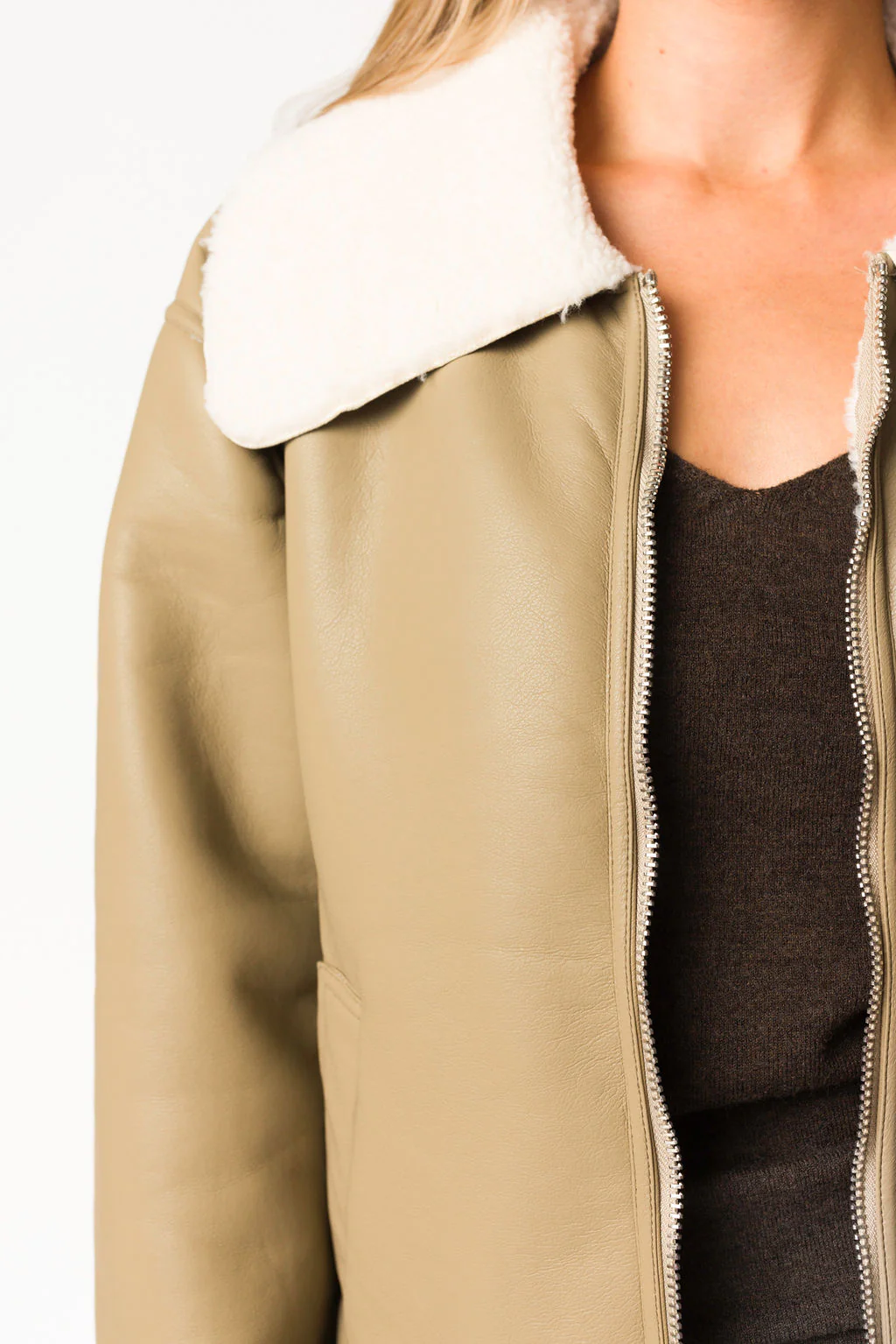 Sammy Vegan Leather and Shearling Jacket in Sandstone