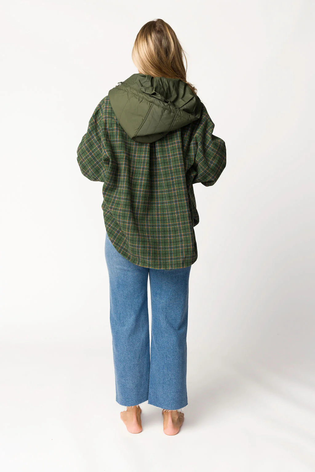 Jilly Plaid Jacket with Detachable Hood in Evergreen