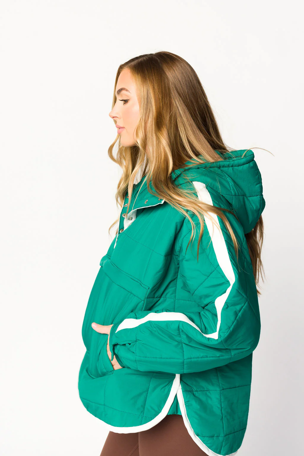 Joanna Quilted Puffer Pullover in Hunter Green/White