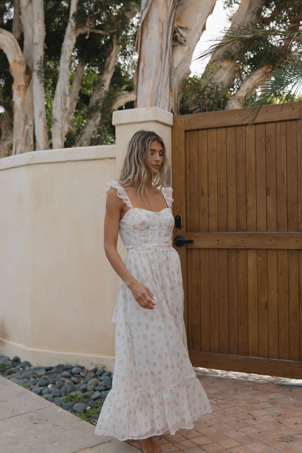 Rosamund Bustier-Style Maxi Dress in Blush Pink Floral - Inclusive Sizing (S-3XL)