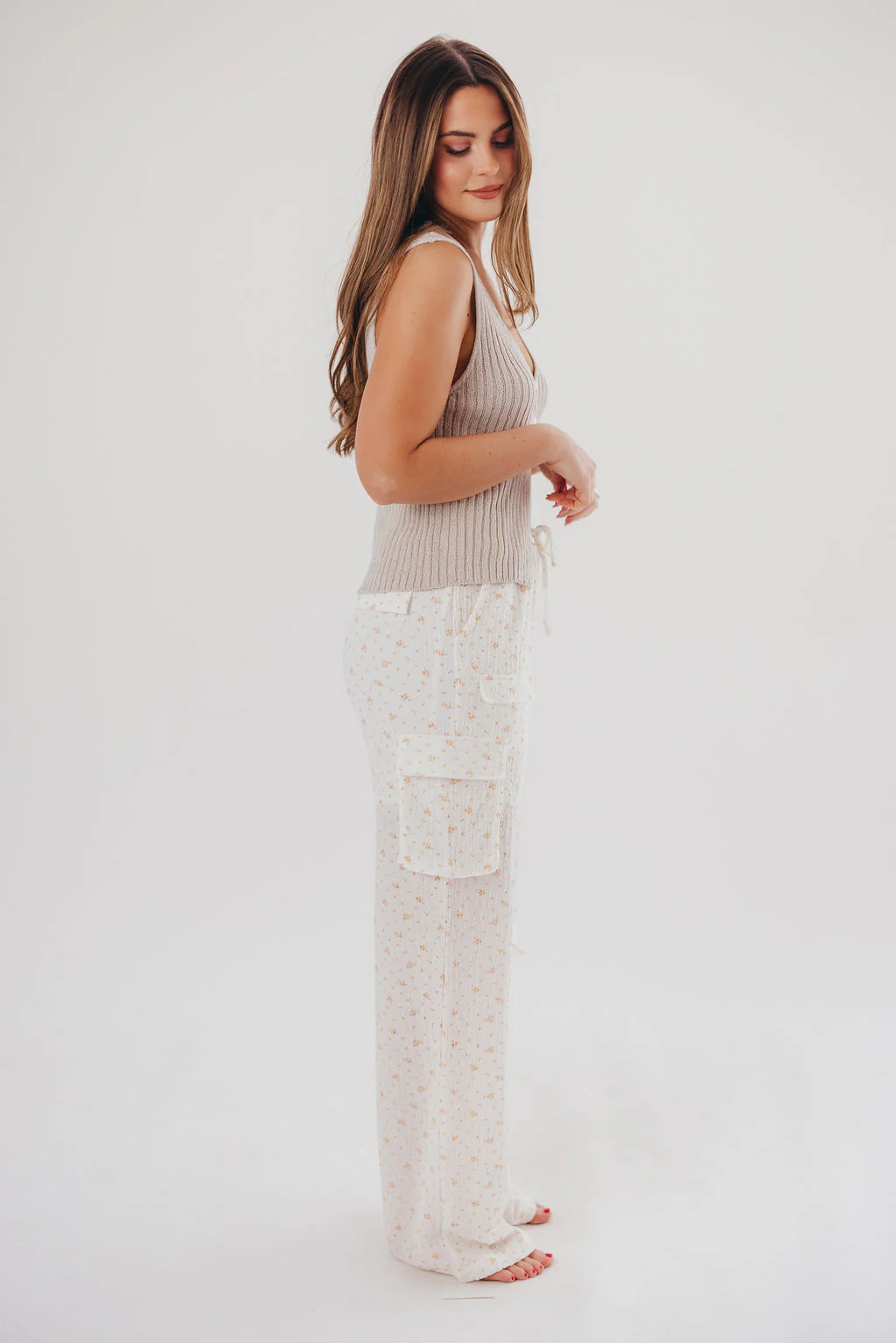 Teagan Crinkle Cargo Pants in Off-White Floral