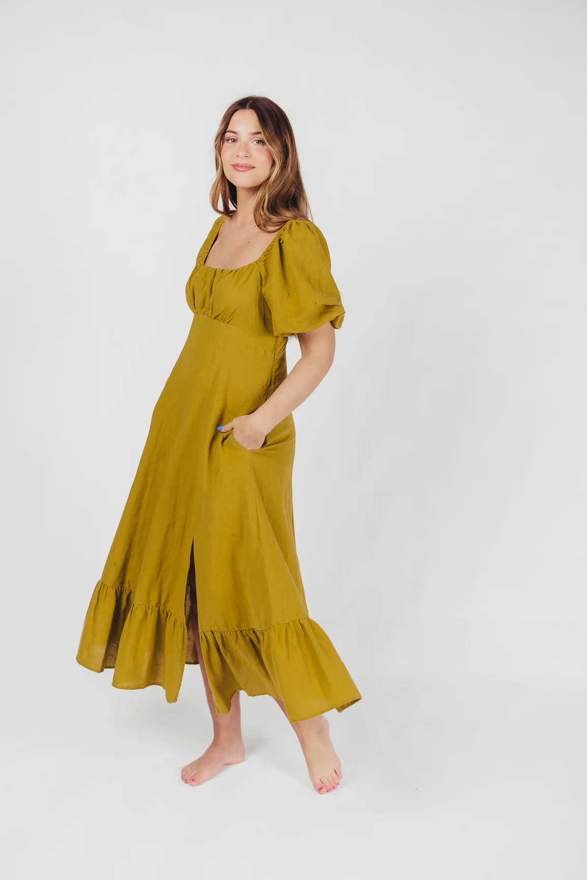 Beatrice Linen Fit-and-Flare Maxi Dress in Chartreuse