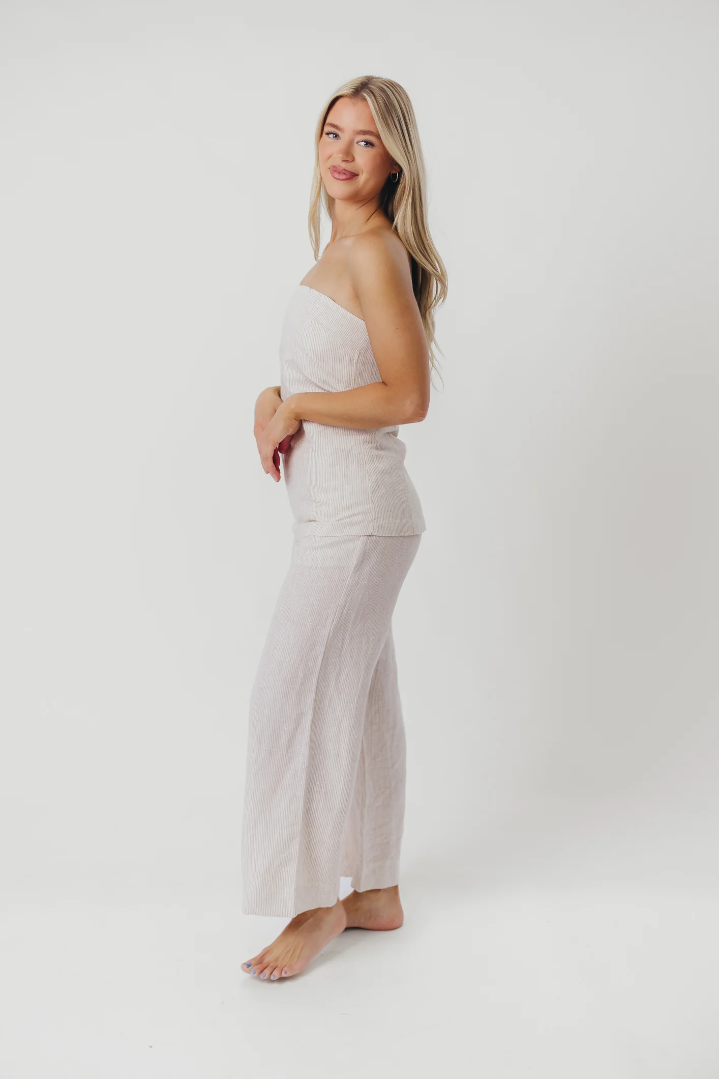 Sloane Striped Button-Down Shirt and Pants Set in Natural - Nursing Friendly