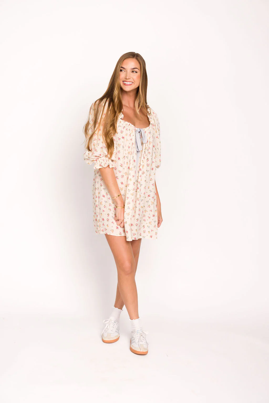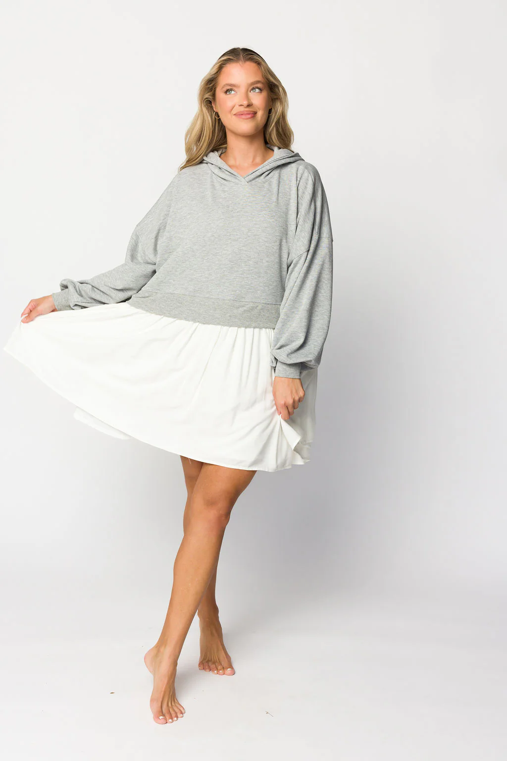 Caroline Hoodie/Babydoll Mini Dress in Heather Grey/Off-White