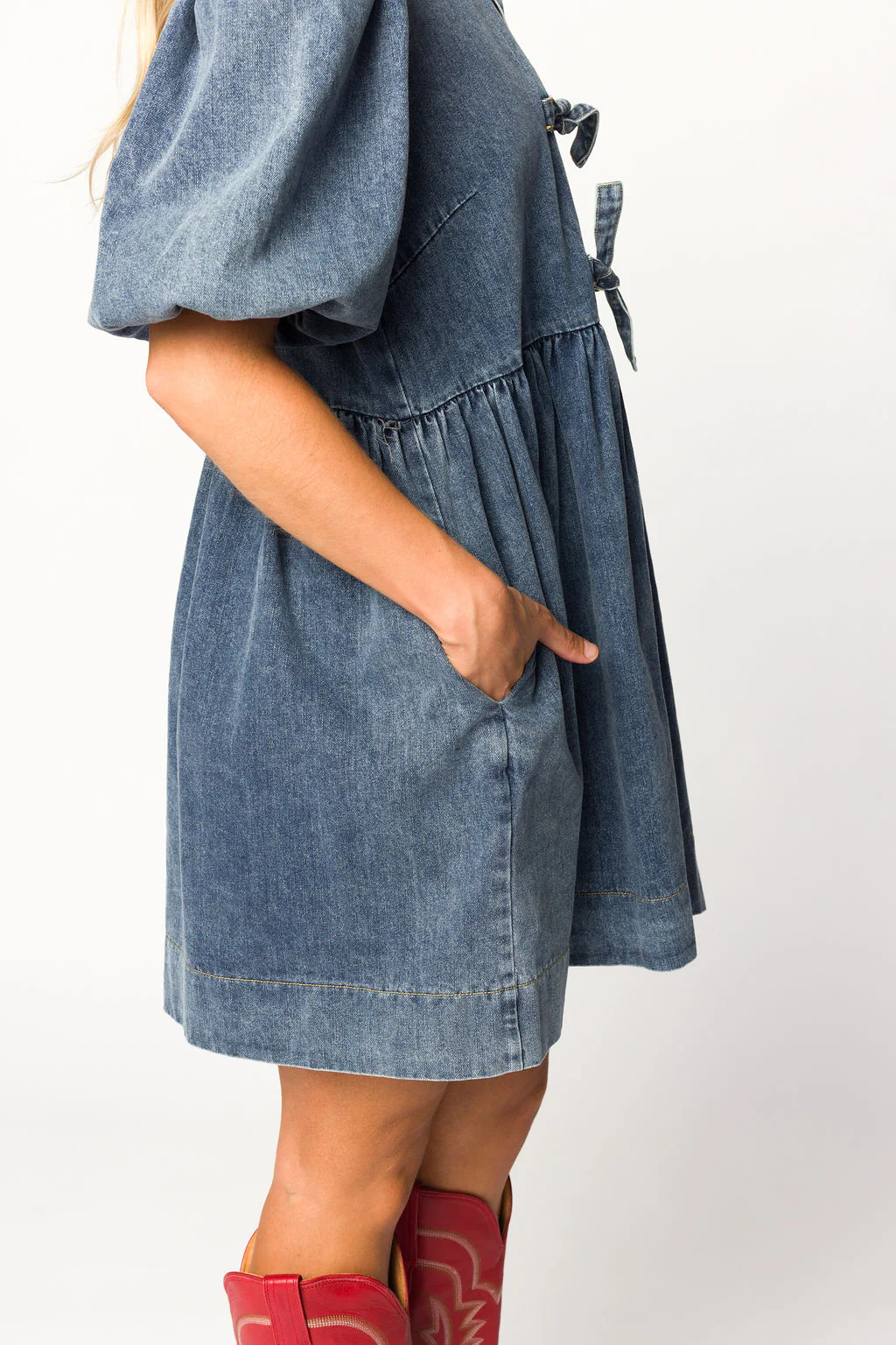 Arlo Denim Mini Babydoll Dress in Medium Wash